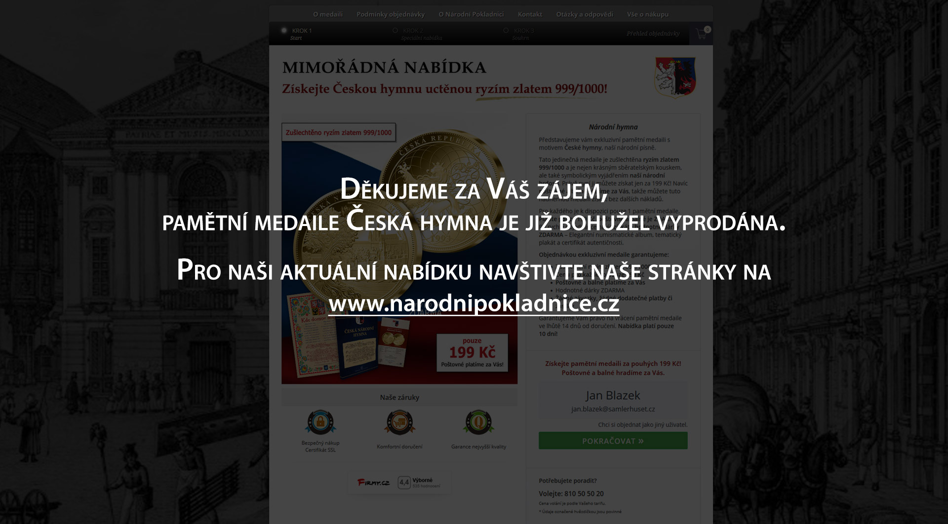Národní Pokladnice - pamětní medaile Česká hymna zušlechtěná ryzím zlatem za pouhých 199 Kč. Poštovné platíme za Vás.